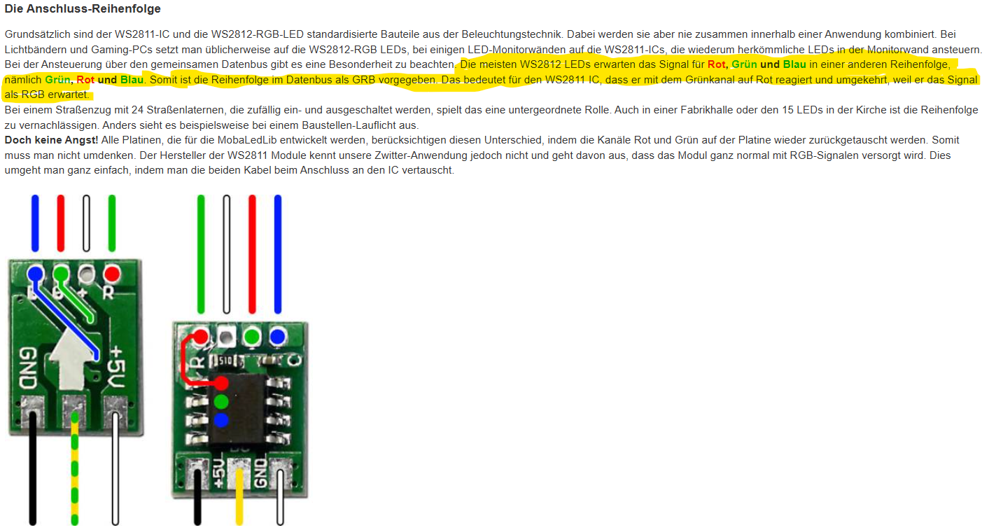 Genau und nicht wundern wenn es sich beim schalten anders verhält wie erwartet bei den ws2811 ist es nicht RGB sondern GRB.