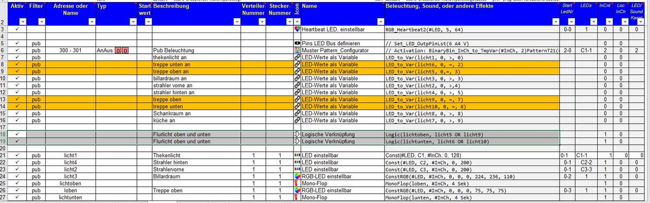 Zeile 18 und 19 sind eine logische Verknüpung um das Treppenhauslicht zu schalten, und zwar beim aufwärts gehen zuerst unten, dann oben und beim abwärts gehen genau umgekeht, erst oben und dann unten.