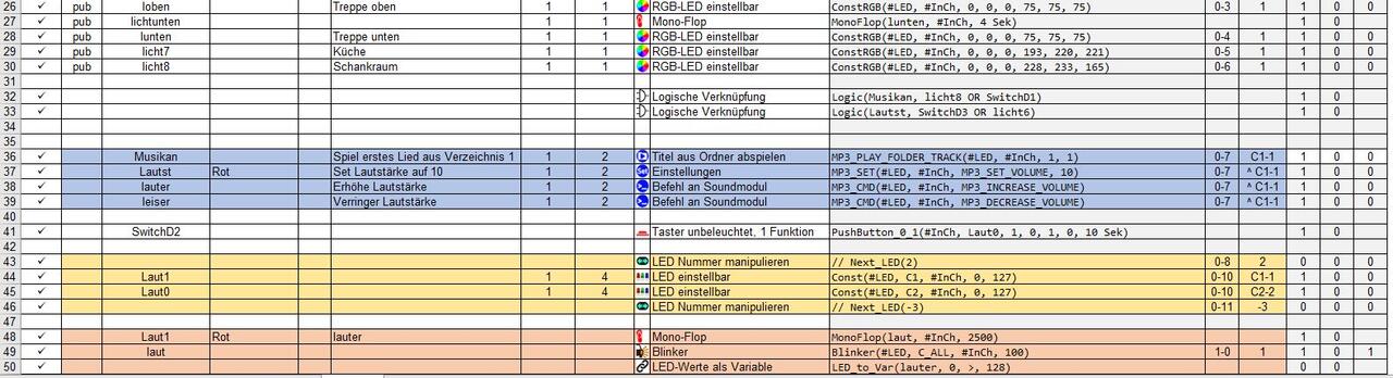 Zeilen 48 bis 50 sowie die Zeilen 52 bis 54 sind die Lauter / Leise Steuerung für das Soundmodul.