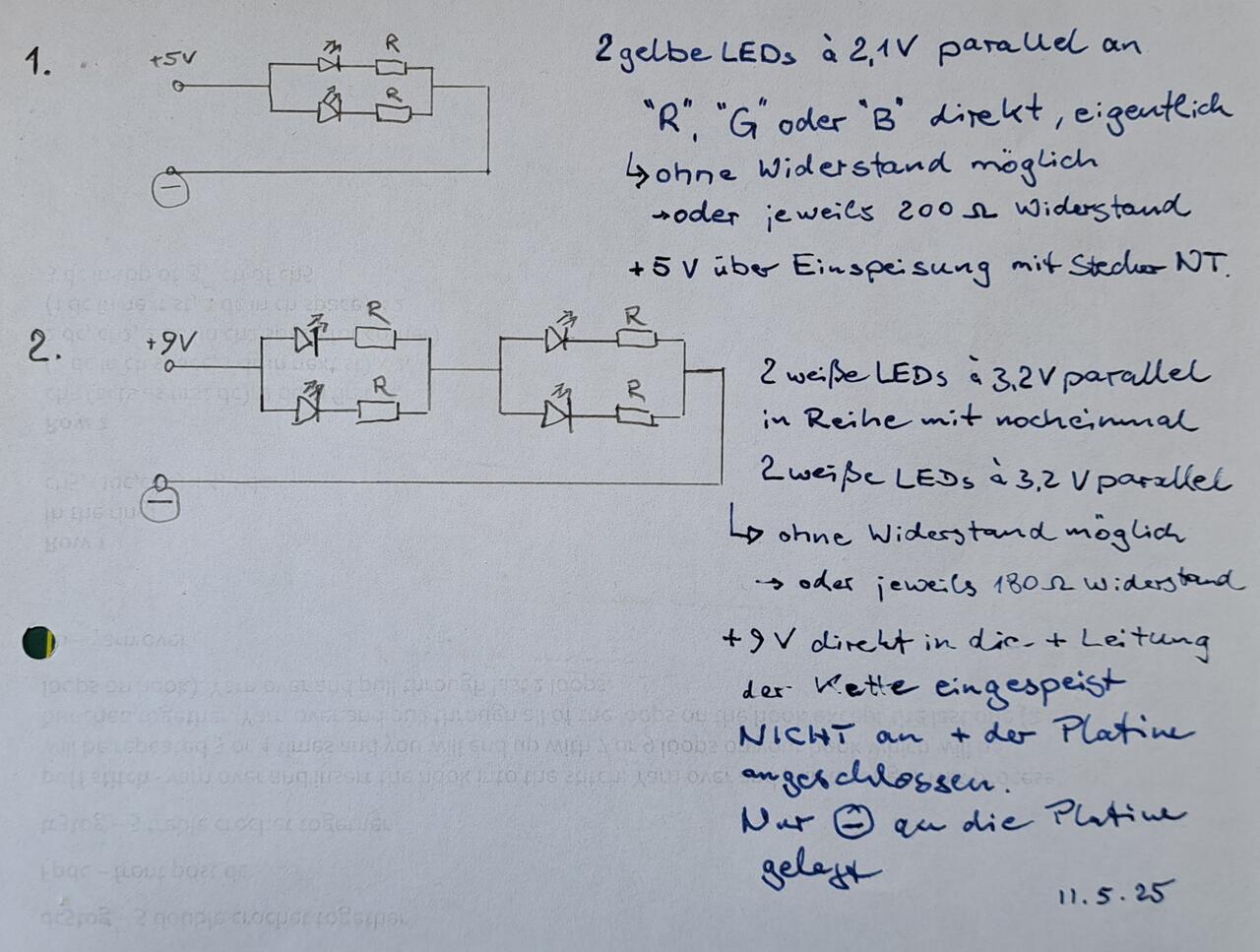 Tricky für mich ist 2. Mit den 2x parallel gelöteten LEDs in Reihe mit nochmal 2x parallel gelöteten LEDs.