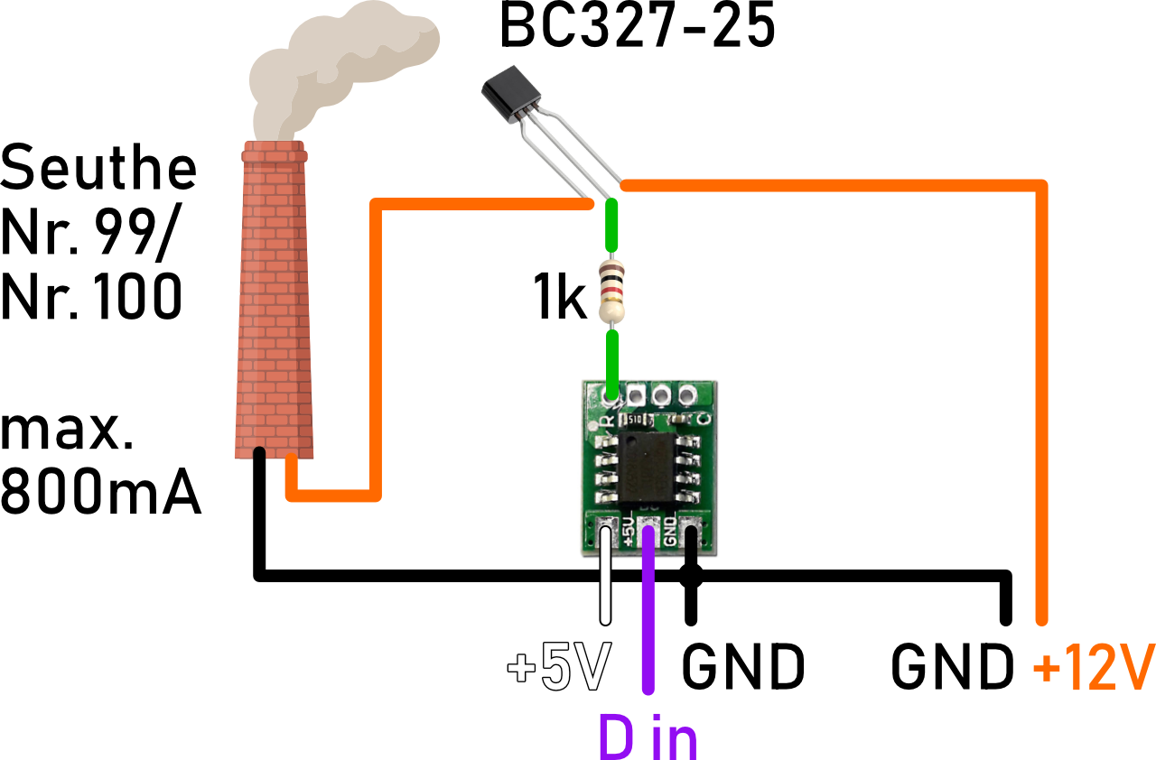 Da der Rauchgenerator #100 10-16V AC bzw DC braucht, muss er wahrscheinlich mit einem Relais und externer Stromversorgung geschaltet werden, oder?
