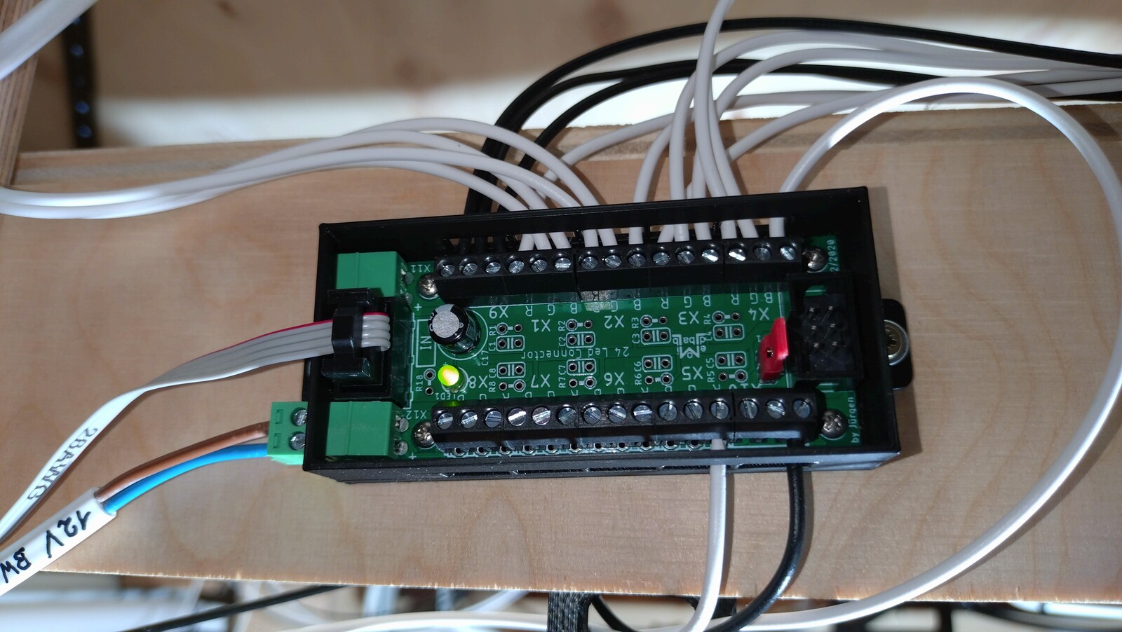 ich habe einen 24 Single LED Connector (521) über X11 mit 12 Volt versorgt. Die 5 Volt zur Versorgung der WS2811 werden über das Flachbandkabel eingespeist. An den Schraubklemmen sind Straßenlaternen der Firmen Brawa und Viessmann angeschlossen. Leider glimmen die Leuchten im Schaltzustand "AUS" sichtbar.
