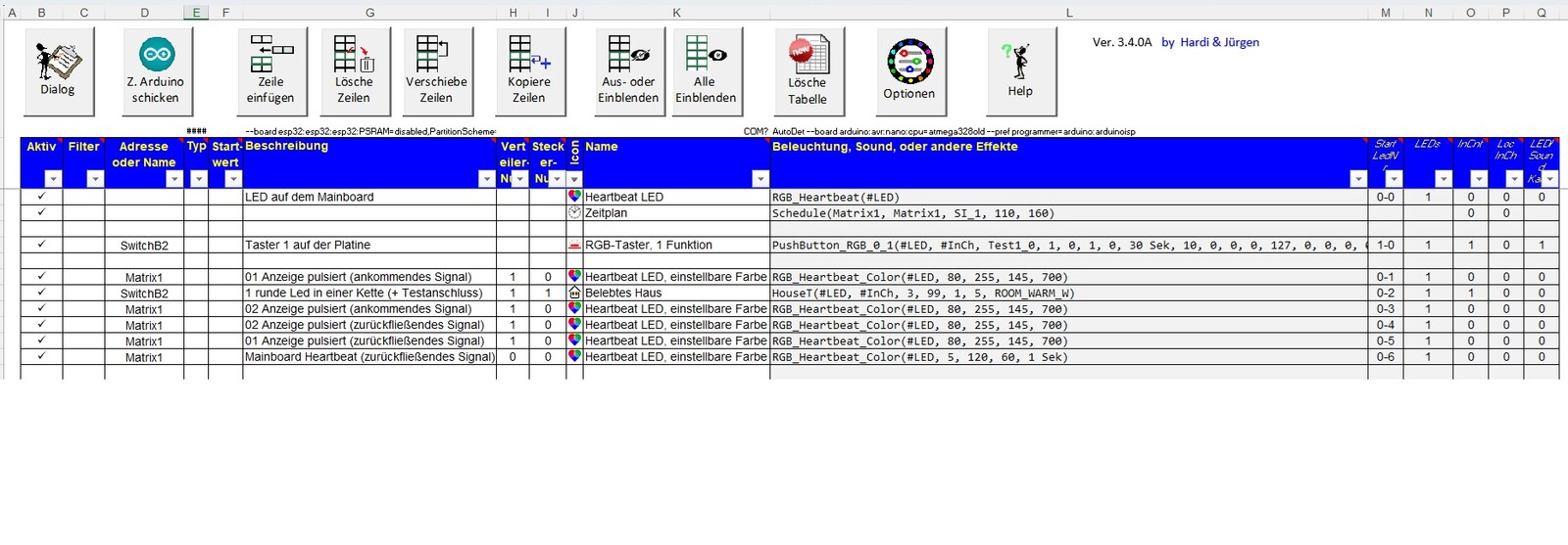 | Ansteuerung der MobaLedLib-Effekte: | nur über Taster/PushButtons |