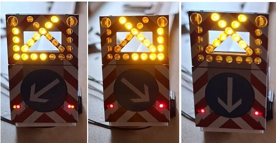Die Blinker und die Rückleuchten werden im Programmgenerator separat programmiert: Anbei noch ein paar Bilder vom fertigen Anhänger: natürlich lässt sich der blaue Pfeil noch von Hand
