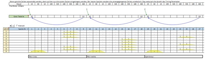 Hier ist das Anschlussschema (→Programmierplan) der LEDs: