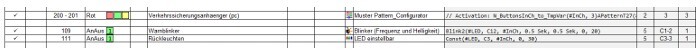 Die Blinksequenzen werden mit dem Pattern-Konfigurator erstellt. Als Beispiel sind alle drei Sequenzen programmiert, die erste Sequenz (Pfeil links) leuchtet bei