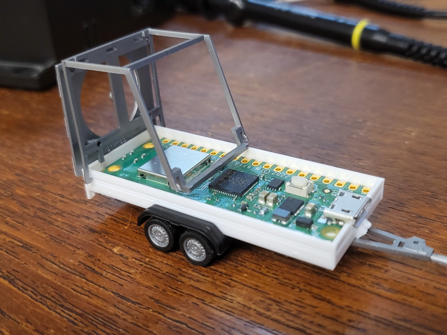 Aber, was wollte ich sagen? ...es passt wirklich! Es geht ein kompletter Raspberry Pico WLAN auf den Anhänger!