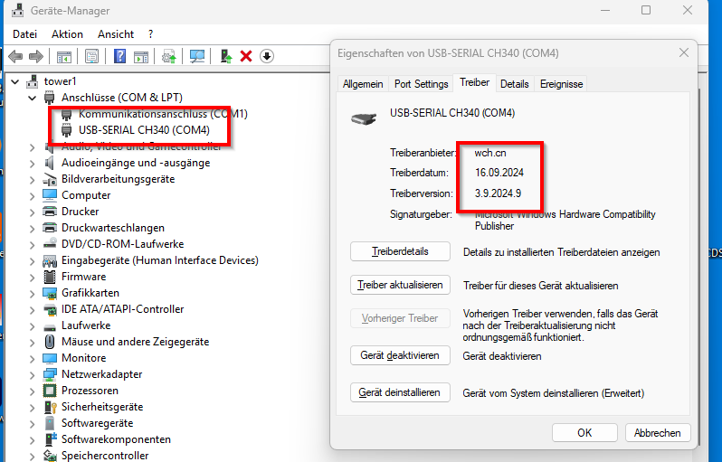 - COM3-Treiber kontrolliert - korrekte Version