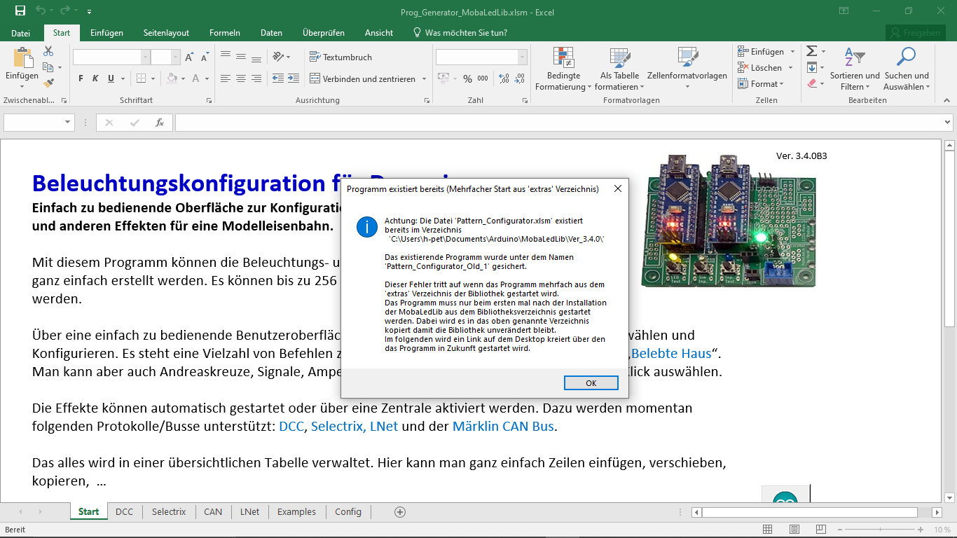 Die EXCEL-Datei wurde in der Version 3 erfolgreich auf den Arduino geladen (Juni 2025). MobaLedLib-Version mit Patch war 3.4.0B2 !!