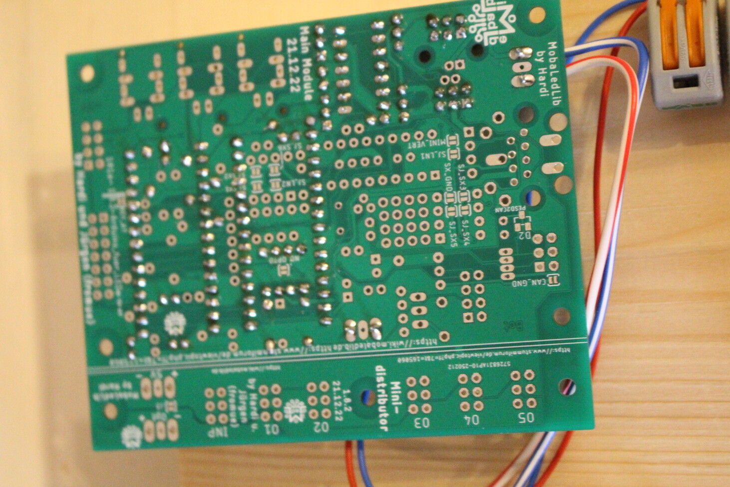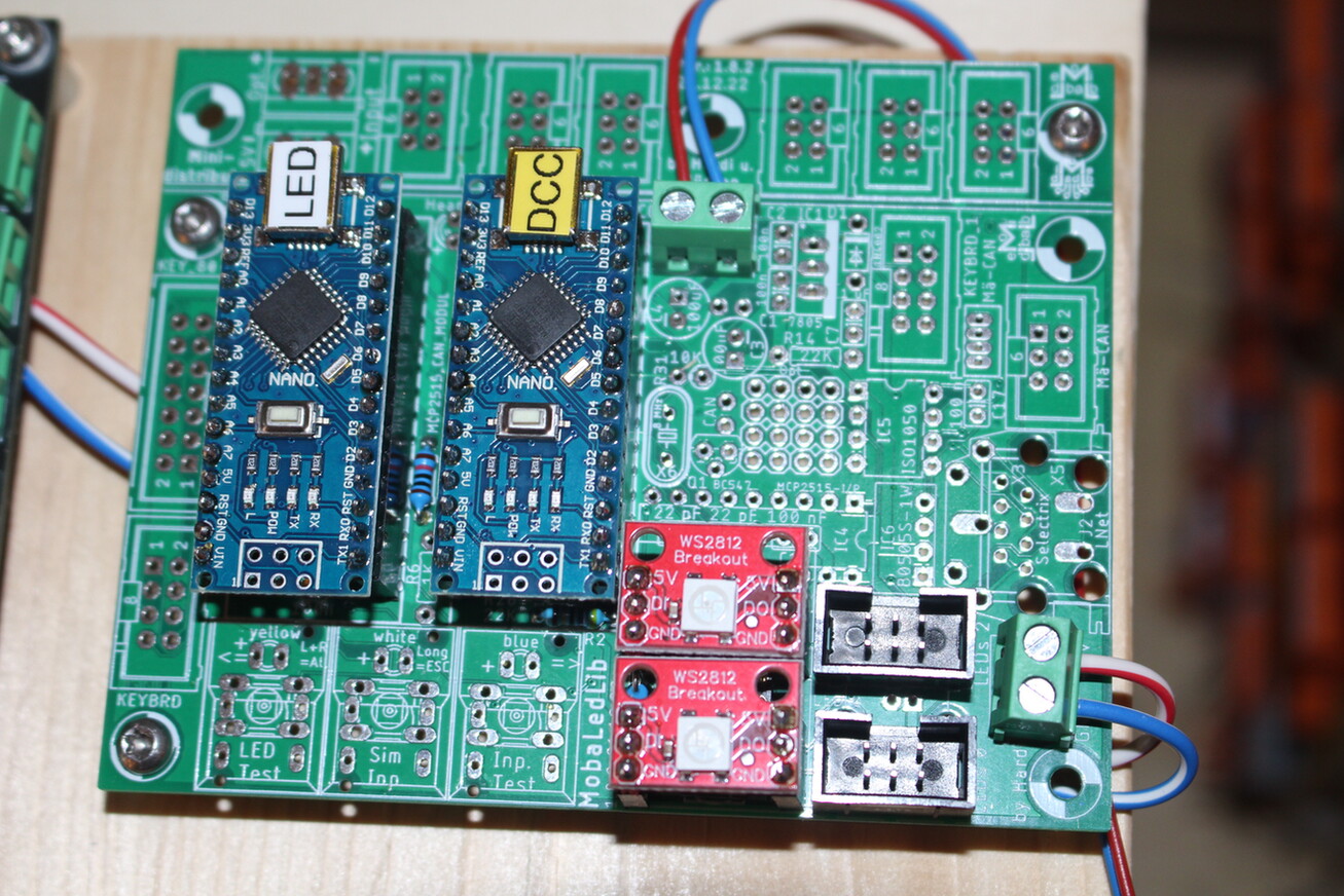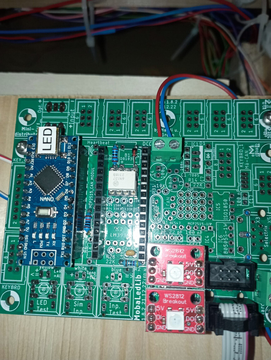 Ich habe das ammengelötetMobaLedLib Starter-Set DCC (Hauptplatine 101DE Version V1.8.2), auch soweit zusammen gelötet. Die Tests mit dem An/Aus-Schalter funktioniert auch.