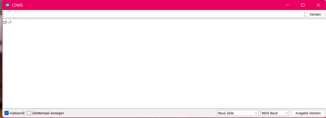 und sende das Ganze an den Arduino. Jetzt die Arduino-IDE starten, dort den Port in Werkzeug einstellen und im gleichen Menü den seriellen Monitor starten. Es öffnet sich ein neues Fenster. Unten rechts steht die Übertragungsrate, die 115200 sein muss.