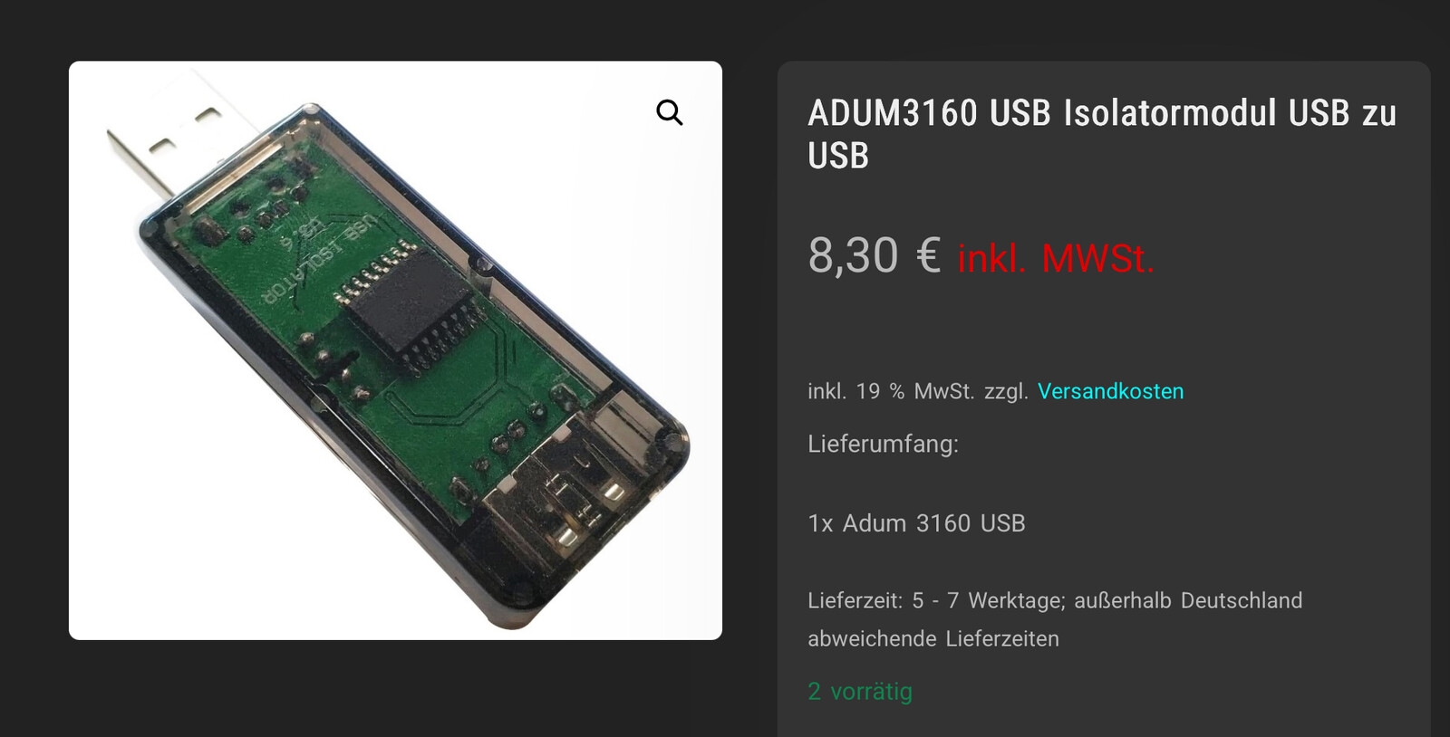 einfach bei Frank im Shop nach „ADUM3160 USB Isolatormodul“ suchen (es reicht auch, wenn man nur nach „USB“ sucht). Das ist dann die Lösung des feinen Mannes.