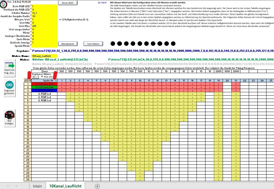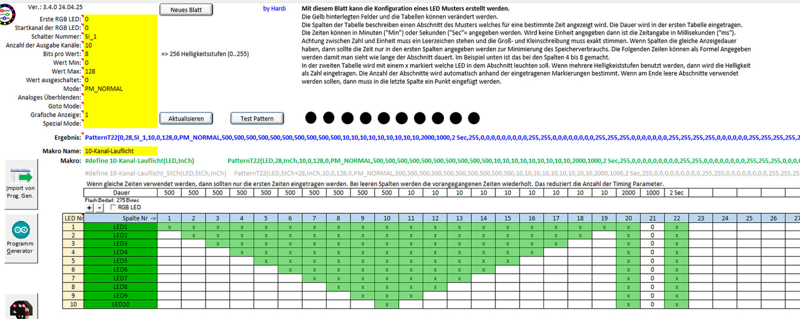 Das Lauflicht wurde mit der Funktion "Programm-Generator" übetragen und eingefügt.