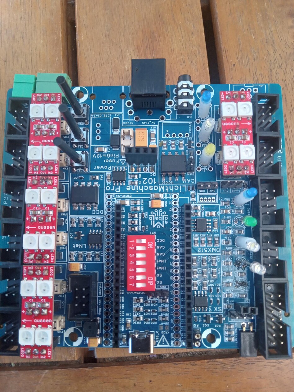Wenn ich die Platinen mit den 4 WS2812 einstecke und an der Wanne anschließe - keine Reaktion. Das bei allen 8 Kanälen.