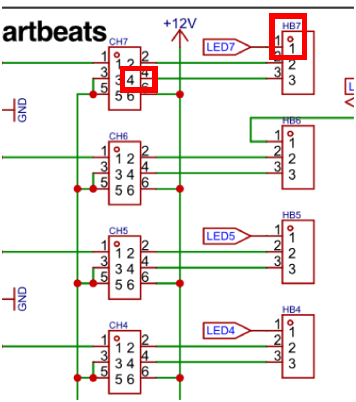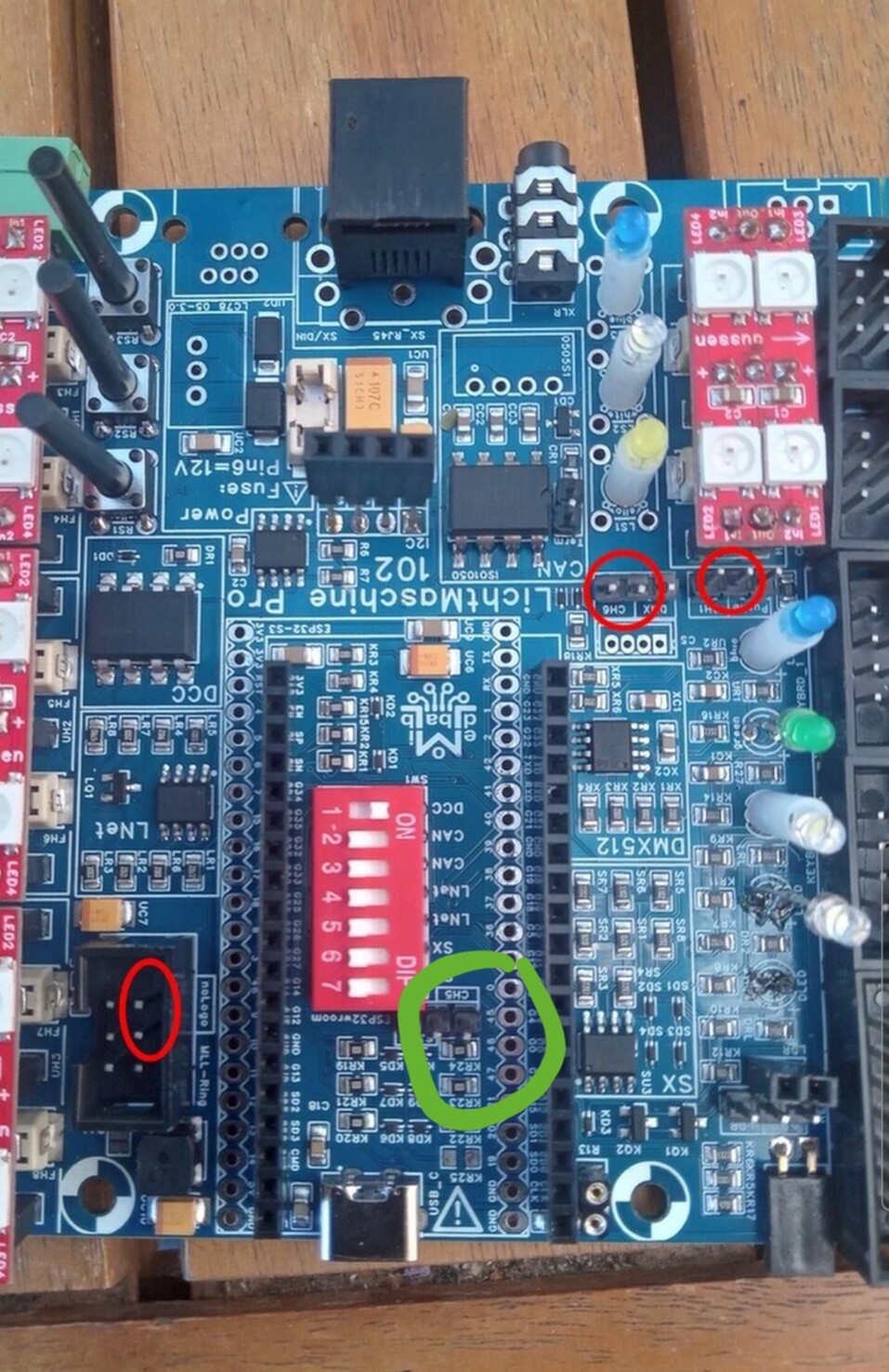 Man kann Ch5 alternativ zum Kanal 5 auch auf dem Key80 Stecker ausgeben. Um das zu aktivieren, wird der Jumper Ch5 gesetzt. Mit der Unterstützung des ESP32 S3 steht hier ein neunter Kanal zur Verfügung, damit man den Ausgang Kanal 5 und einen anderen LED Kanal im Key80 Stecker gleichzeitig benutzen kann. Zu bedenken ist auch, dass die Heartbeat LED von Kanal 5 immer parallel zur ersten LED am Key80 Stecker läuft, weil das Datensignal NICHT durch einen weiteren Jumper geleitet wird.