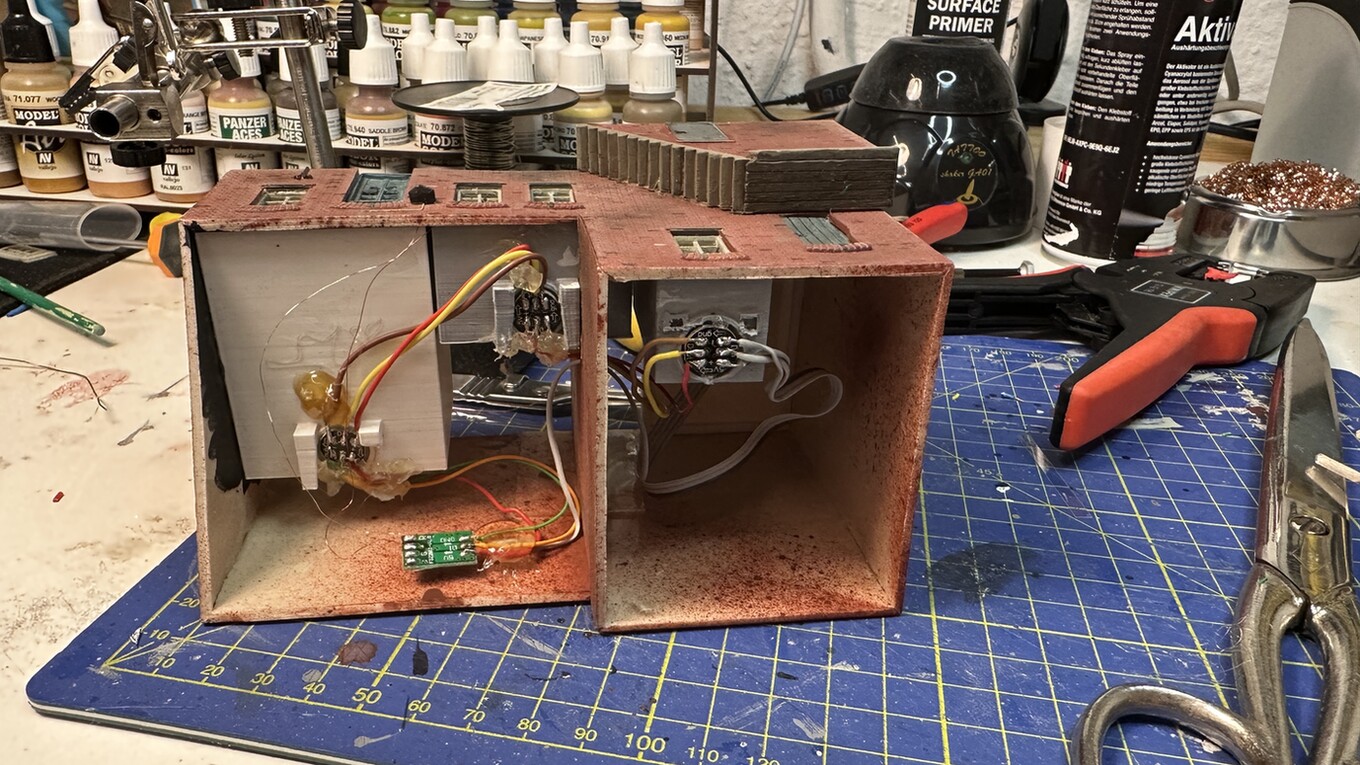 ich lade mal ein paar Bilder hoch. Das Haus ist allerdings fix und fertig verklebt, ich komme jetzt nur noch mit etwas Aufwand heran. Und die Bilder genügen wohl nicht so recht einer richtigen technischen Dokumentation...