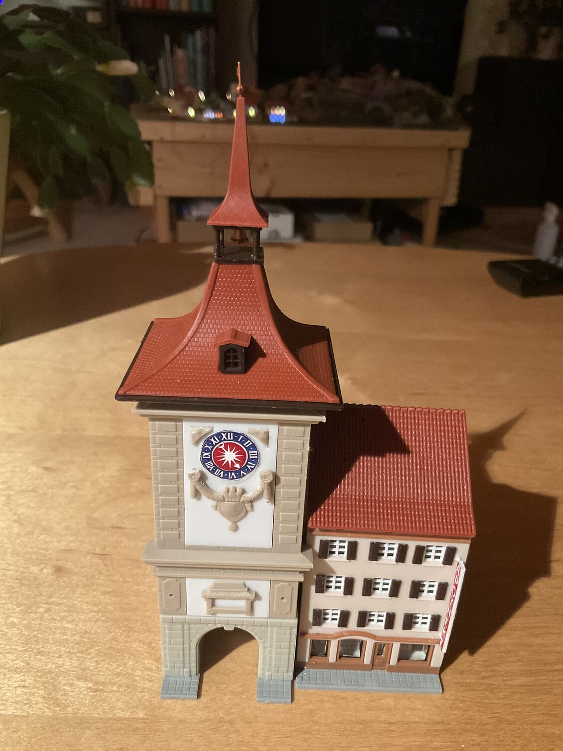 jetzt ist alles gut: Alle Lämple leuchten, der Fußboden der Apotheke passt und der Pogo-Magnet hält. Es ist zwar noch kein belebtes Haus, noch sind die Handwerker drin. Morgen wollen aber die virtuellen Preiserlein einziehen und es sich gemütlich machen. Dann kommt auch Leben in die Beleuchtung und Farbe.