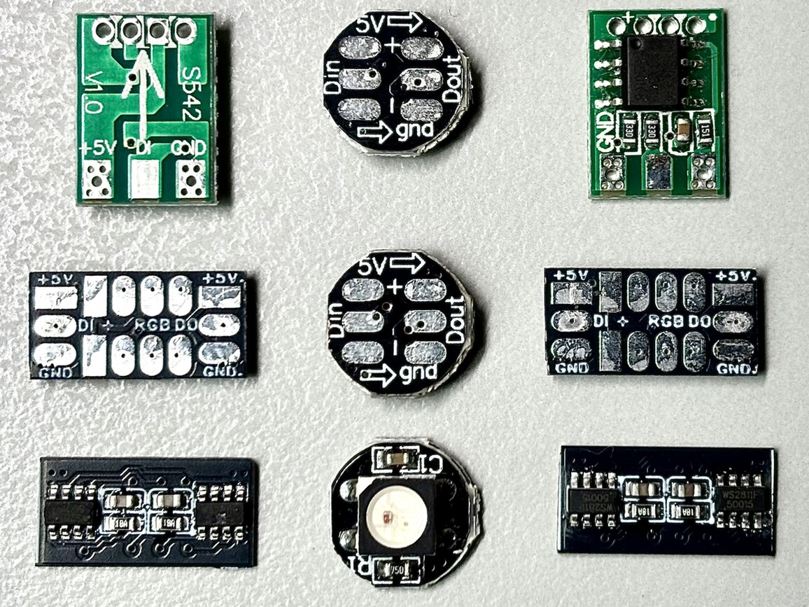 Der Bau meines Bahnsteigs hat mir gezeigt, wie wichtig eine noch kleinere MultiUse-Platine sein kann. Leider hatte ich zu der Zeit keine Idee, wie ich das Ganze weiter schrumpfen könnte. Doch mit der Linearuhr kam auch die Lösung: Der WS2811F.