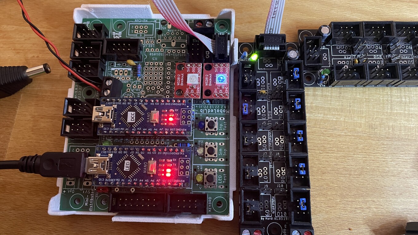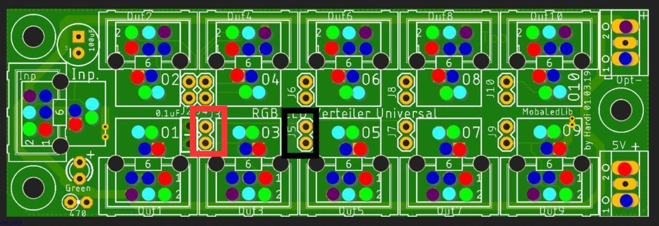 Ich habe eine Hauptplatine 100 ohne Verteiler. Ich gehe von dort in eine Verteilerplatine 200. Diese VP hat eine 5V Stromeinspeisung vom Sicherungsverteilewr Pro.